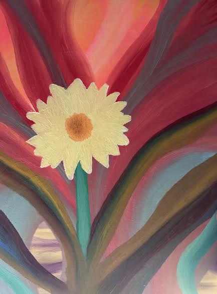 From that emotional soil, a boisterous flower erupts, wild and unapologetic. Its petal shout, but its roots whisper stories–deeply connected, impossibly ancient. This piece is about what grows when emotion is not silenced, but allowed to compost into beauty."