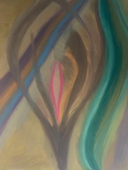 At first glance, this is a sacred rendering of the artist's own vagina–an intimate and raw reflection. Yet what emerges goes far beyond anatomy. The form blurs into symbol: part eye, part path, part cosmic gate.